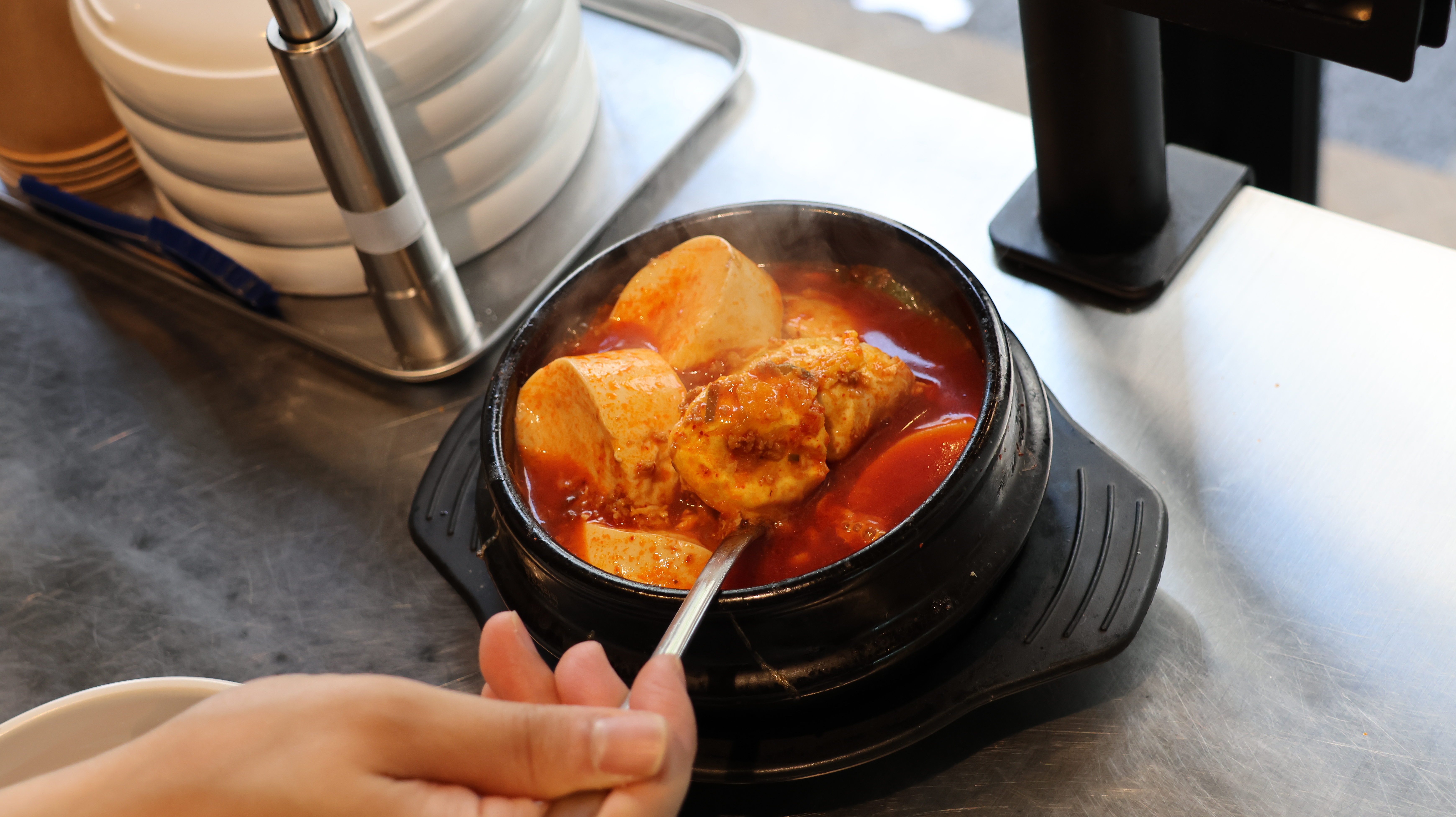 흑돈순두부도 별미였습니다. 다진 흑돼지와 순두부, 계란이 어우러져 짜지 않고 담백해서, 고기와 곁들여 먹기에 딱 좋았어요. 밥은 철원 오대쌀을 써서 고슬고슬하고, 마지막까지 완벽한 한 끼를 완성할 수 있었습니다.